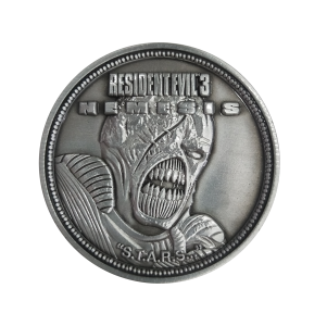 This Resident Evil 3 collectible coin is limited to only 9,995 worldwide. 'There isn't going to be any rescue, we have to get out of here' is embossed on one side and the other features Nemesis.