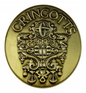 Enjoy this Gringotts Bank medallion in an antique gold-style finish which is heavily embossed to feature the emblem of the safest place in the wizarding world (other than Hogwards of course).