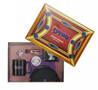 Brimming with the coolest black and purple merch, stay hydrated and toasty with the Spyro heat exchange mug, embroidered cap, lanyard, enamel pin and dragon skin effect wallet.