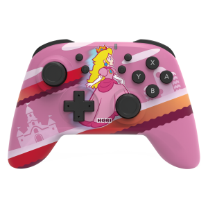 Protect the Mushroom Kingdom with everyone's favorite princess in pink! Introducing the new Princess Peach Nintendo Switch Wireless HORIPAD. The built in rechargeable lithium-ion battery and Bluetooth wireless technology gives you freedom with a 10 m range and up to 15 hours of battery life. Lightweight yet solid, the snappy and responsive Wireless HORIPAD is equipped with an accelerometer and gyroscope for full motion control, making it the go-to choice for Nintendo Switch gamers. Charges with included USB-C cable. Officially licensed by Nintendo.