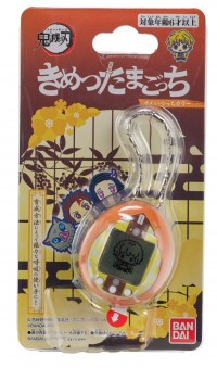 Raise your demon slayer and master different breath styles with the Zenitsutchi Demon Slayer Tamagotchi. Based on your training methods, you can raise your character into one of many different Breath users. Feed your slayer either rice bowl or green tea and play three different games. If you neglect training, your Slayer will become injured. If you do not treat the injury yourself, Kakushi will come. Japanese programming with a yellow design.